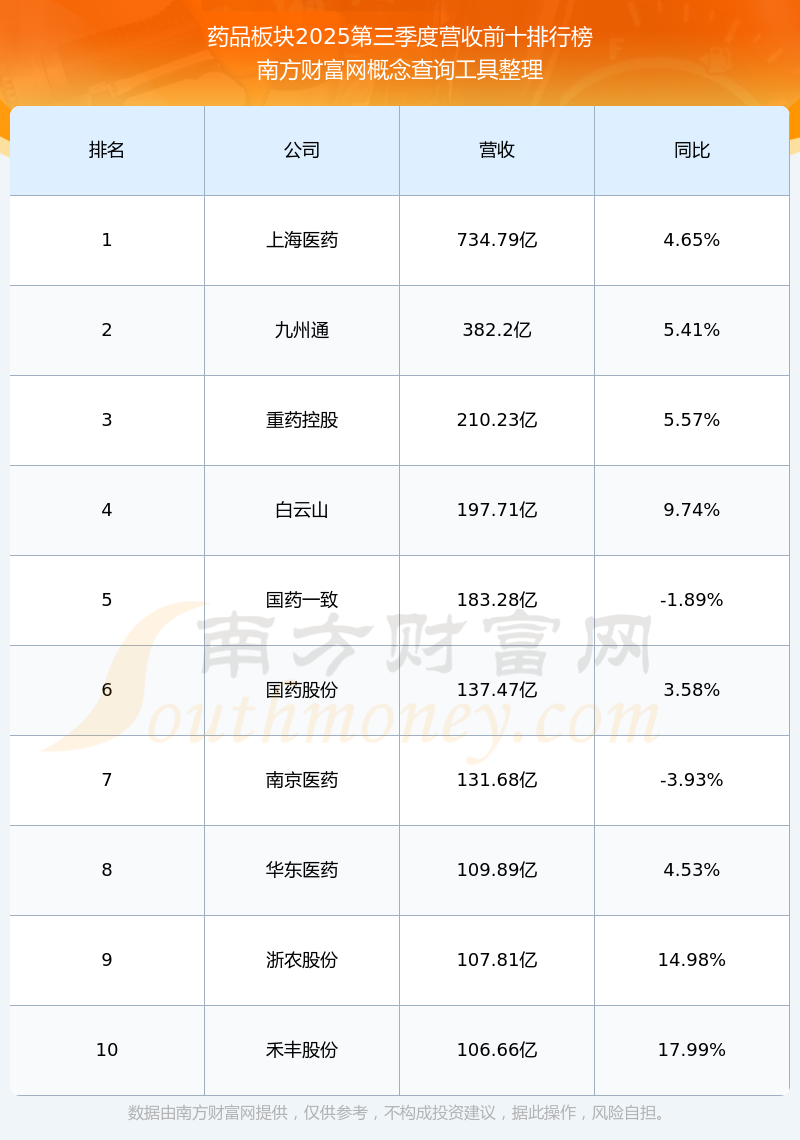 按照南方财富网概念查询工具统计,该股所属板块为药品板块,该板块共有278只股票,神州细胞2025第三季度营收在该板块中排名为第278名,该板块2025第三季度营收排名前十的股票如下表: