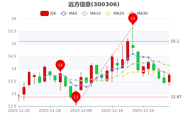 12月31日收盘最新消息,远方信息5日内股价下跌3.78%,截至收盘,该股报13.750元涨2.31% 。
