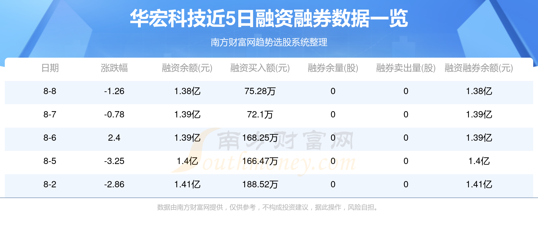 华宏科技8月8日融券信息显示,融资方面,当日融资买入75.28万元,融资偿还193.09万元,融资净买额-117.82万元。近5日融资融券数据一览见下表:
