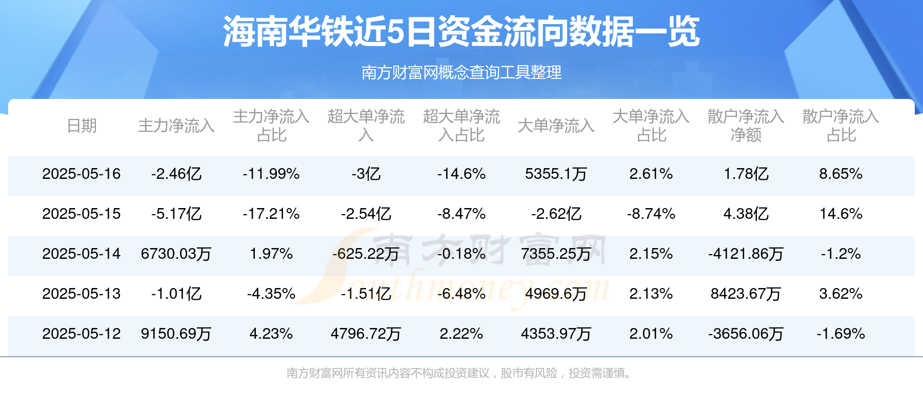 5月16日消息,海南华铁开盘报价11.07元,收盘于11.200元,跌0.88%。当日最高价11.29元,市盈率36.13。