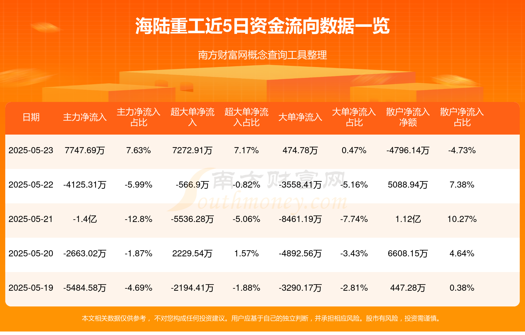近5日资金流向一览见下表: