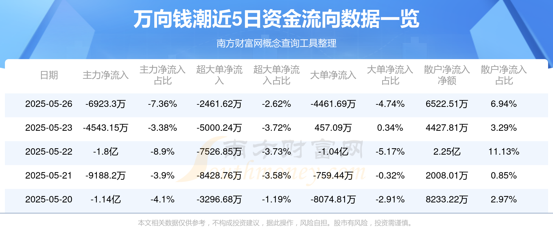 5月26日消息,万向钱潮5月26日主力净流出6923.3万元,超大单净流出2461.62万元,大单净流出4461.69万元,散户净流入6522.51万元。