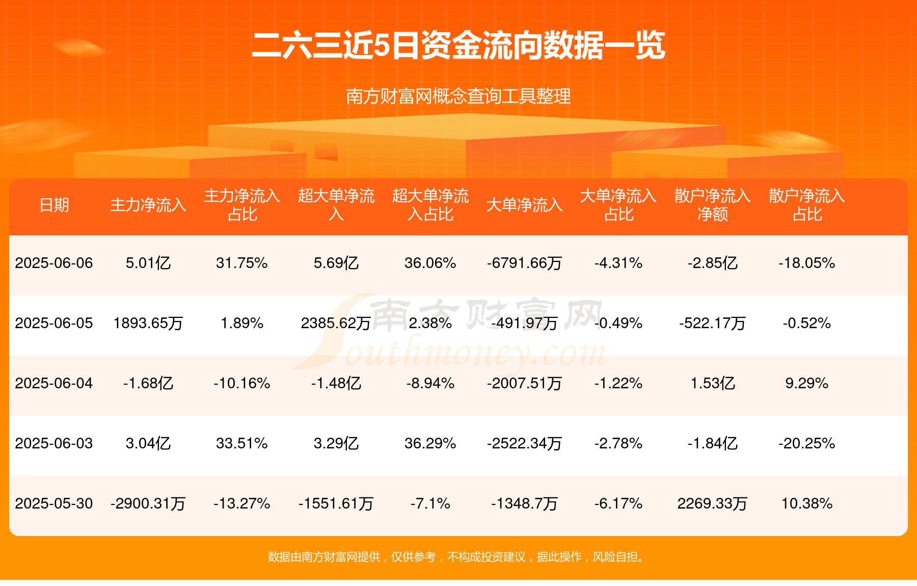 6月6日消息,资金净流入5.01亿元,超大单资金净流入5.69亿元,成交金额15.77亿元。