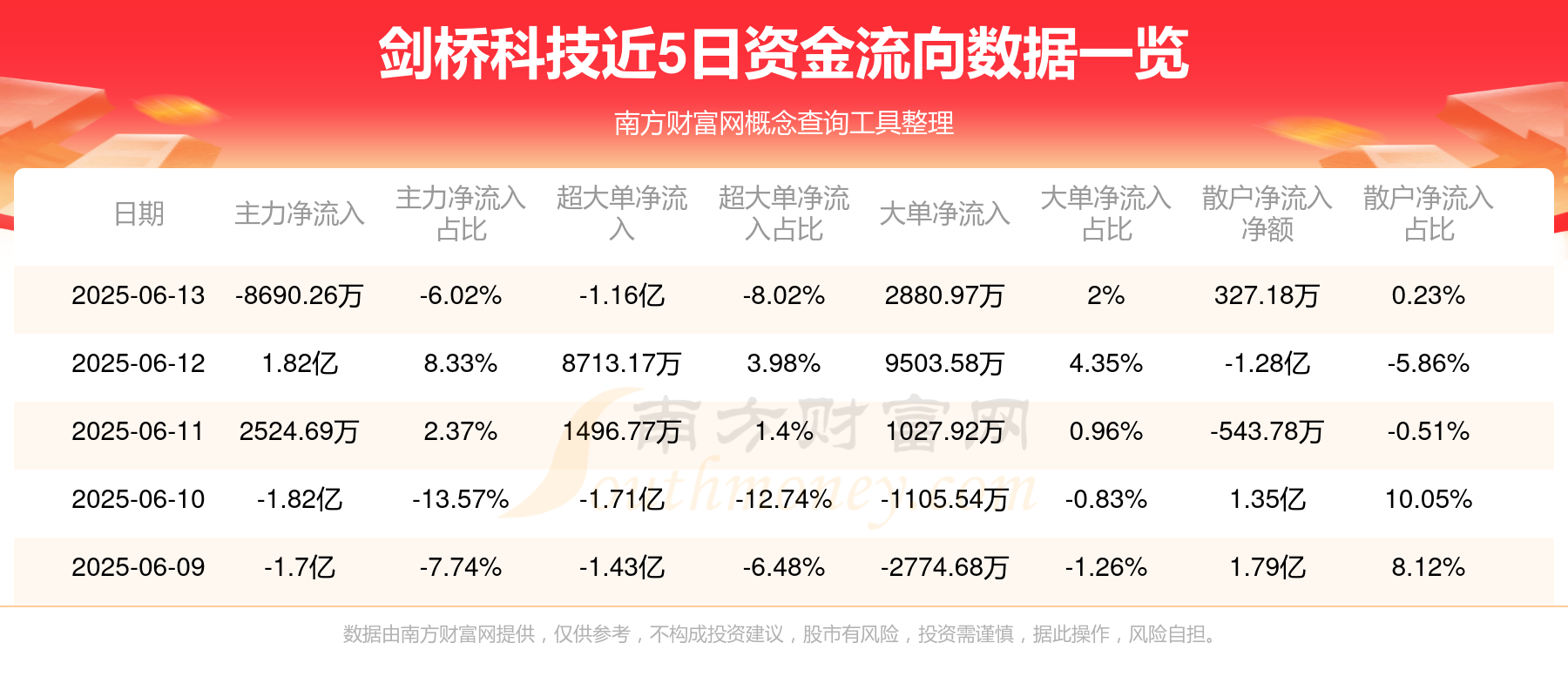 6月13日消息,剑桥科技6月13日主力净流出8690.26万元,超大单净流出1.16亿元,大单净流入2880.97万元,散户净流入327.18万元。