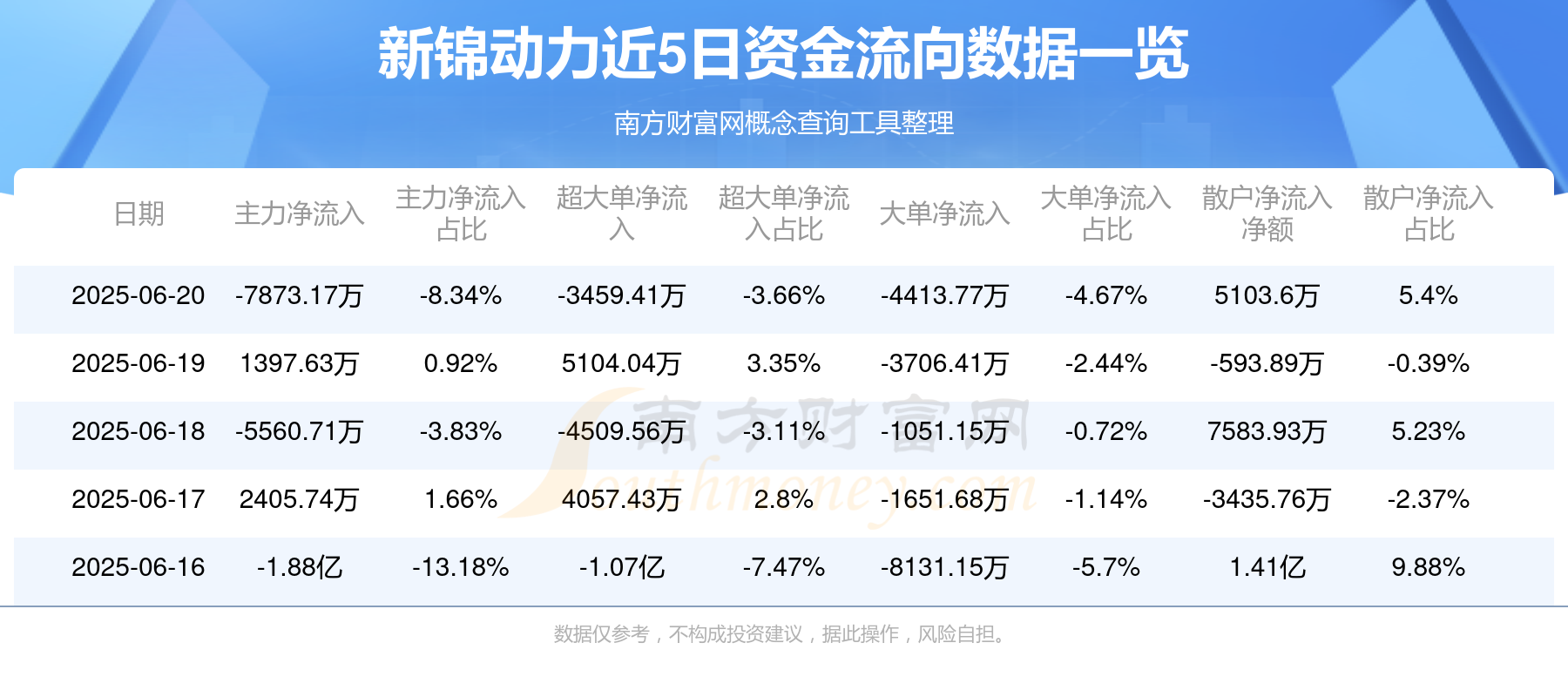 6月20日消息,新锦动力资金净流出7873.17万元,超大单净流出3459.41万元,换手率17.26%,成交金额6.91亿元。
