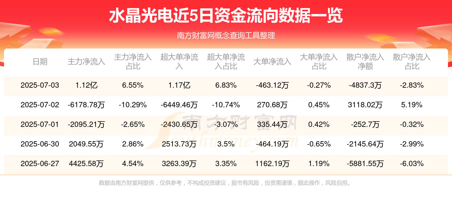 近5日资金流向一览见下表:
