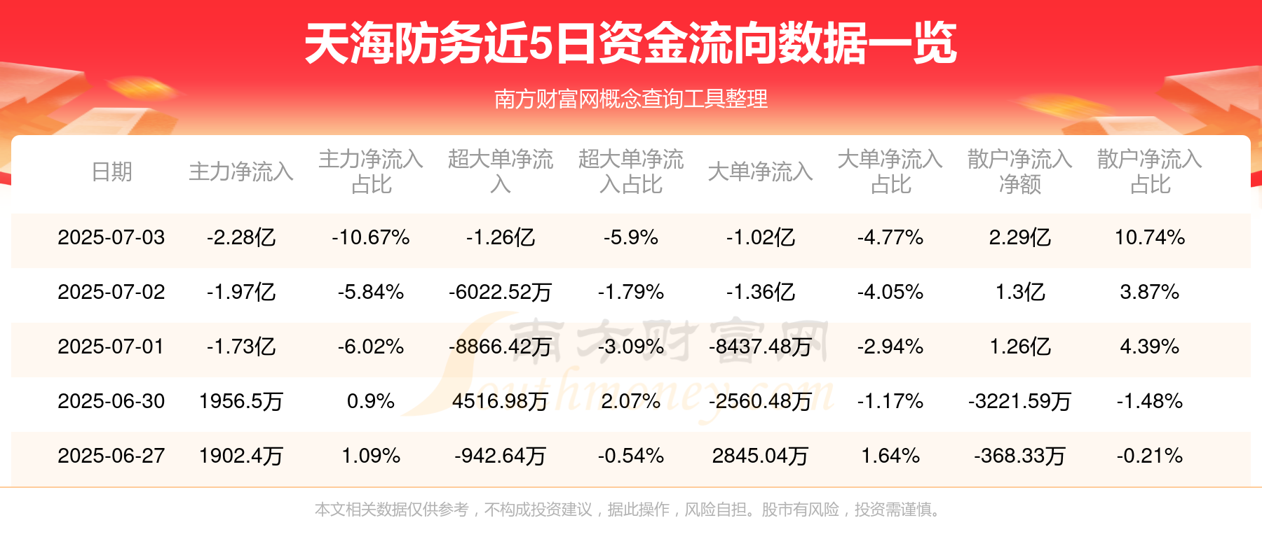 2025年7月4日,近3日天海防务股价下跌3.53%,现报7.090元,总市值为122.52亿元,换手率18.05%。