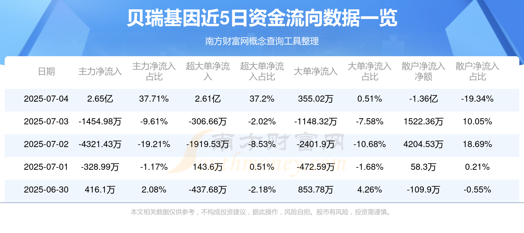 7月4日消息,贝瑞基因今年来涨幅上涨42.32%,最新报14.650元,涨9.98%,成交额7.02亿元。