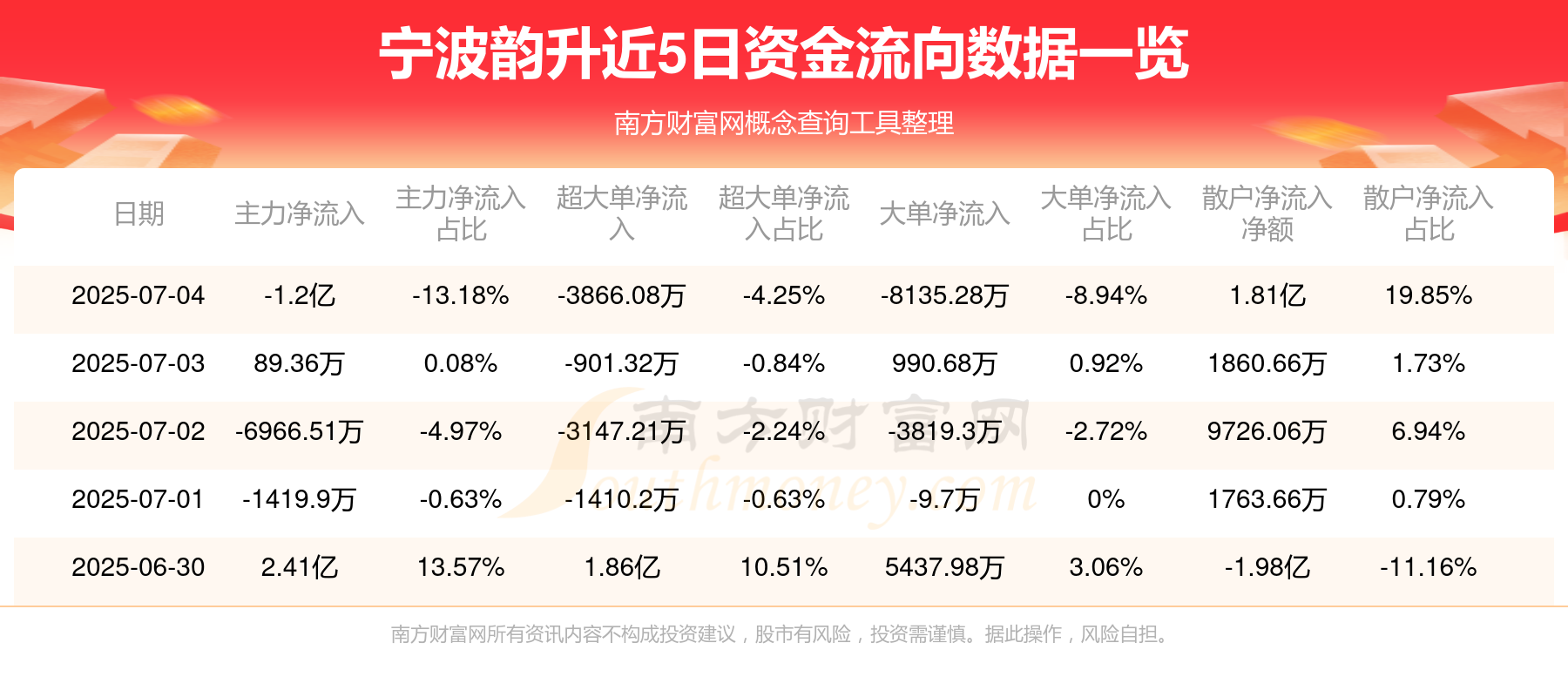 7月4日消息,宁波韵升截至下午三点收盘,该股报10.590元,跌3.38%,3日内股价下跌1.98%,总市值为116.39亿元。