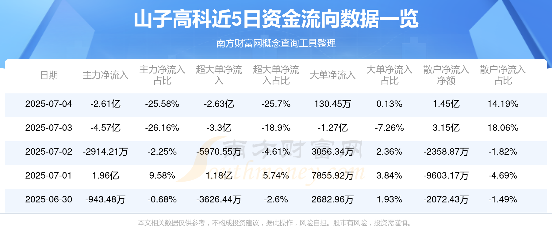 近5日资金流向一览见下表: