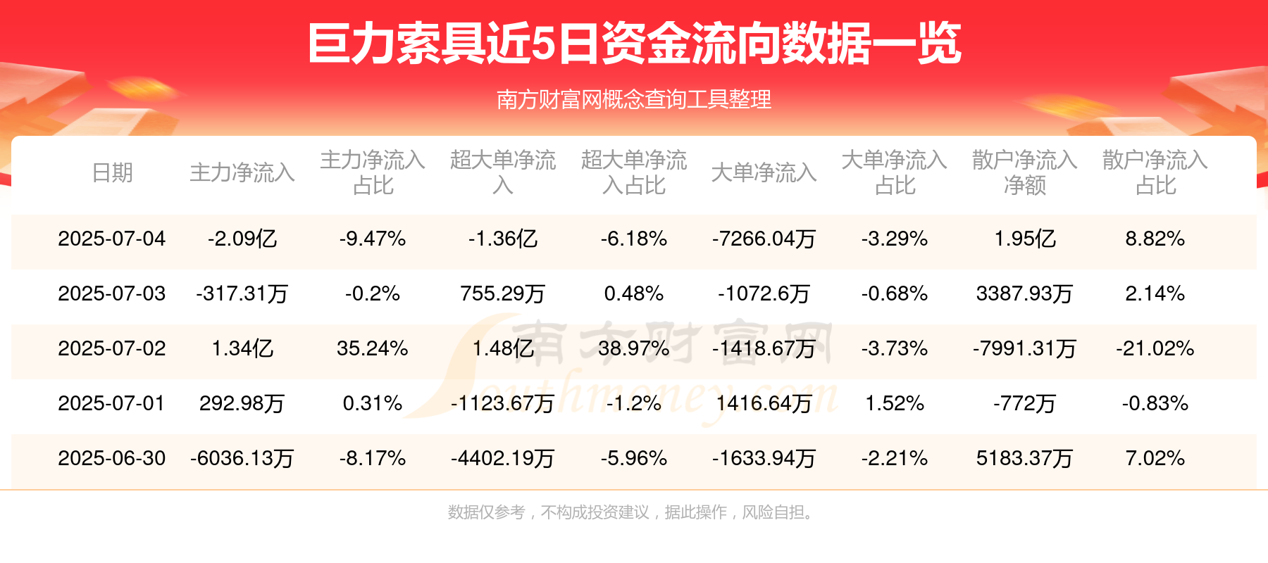 近5日资金流向一览见下表: