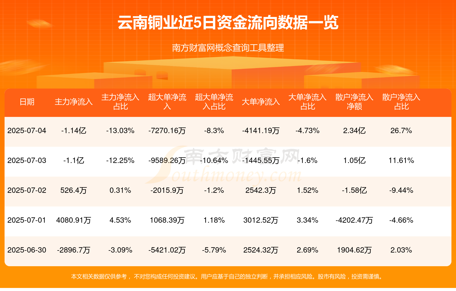资金流向数据方面,7月4日主力资金净流流出1.14亿元,超大单资金净流出7270.16万元,大单资金净流出4141.19万元,散户资金净流入2.34亿元。