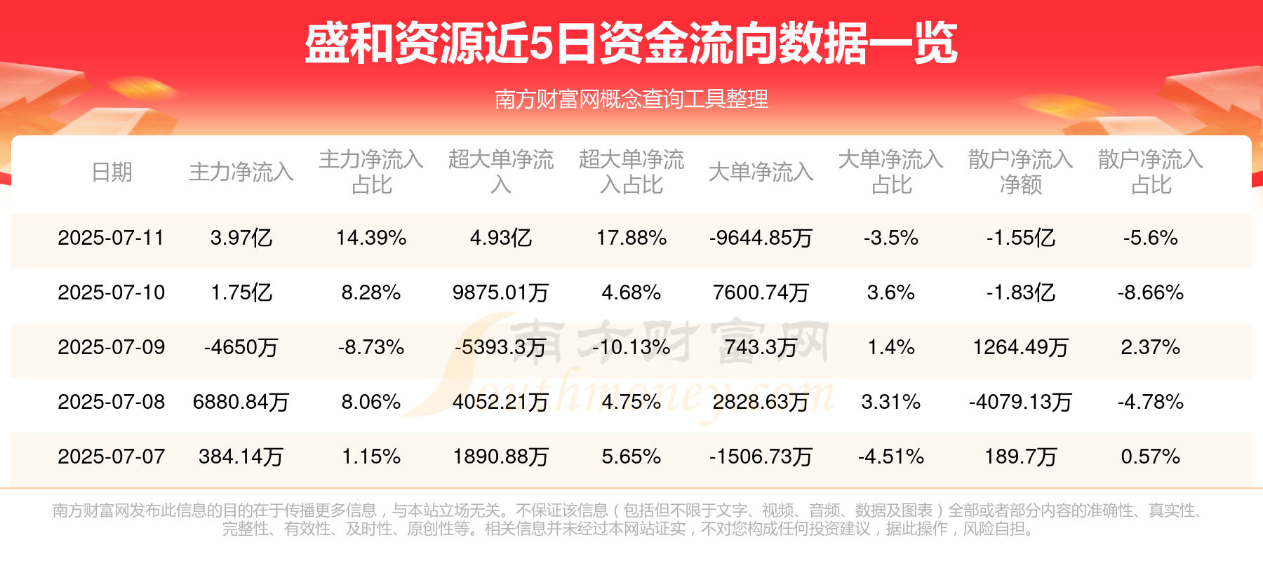 7月11日消息,XD盛和资主力净流入3.97亿元,超大单净流入4.93亿元,散户净流出1.55亿元。