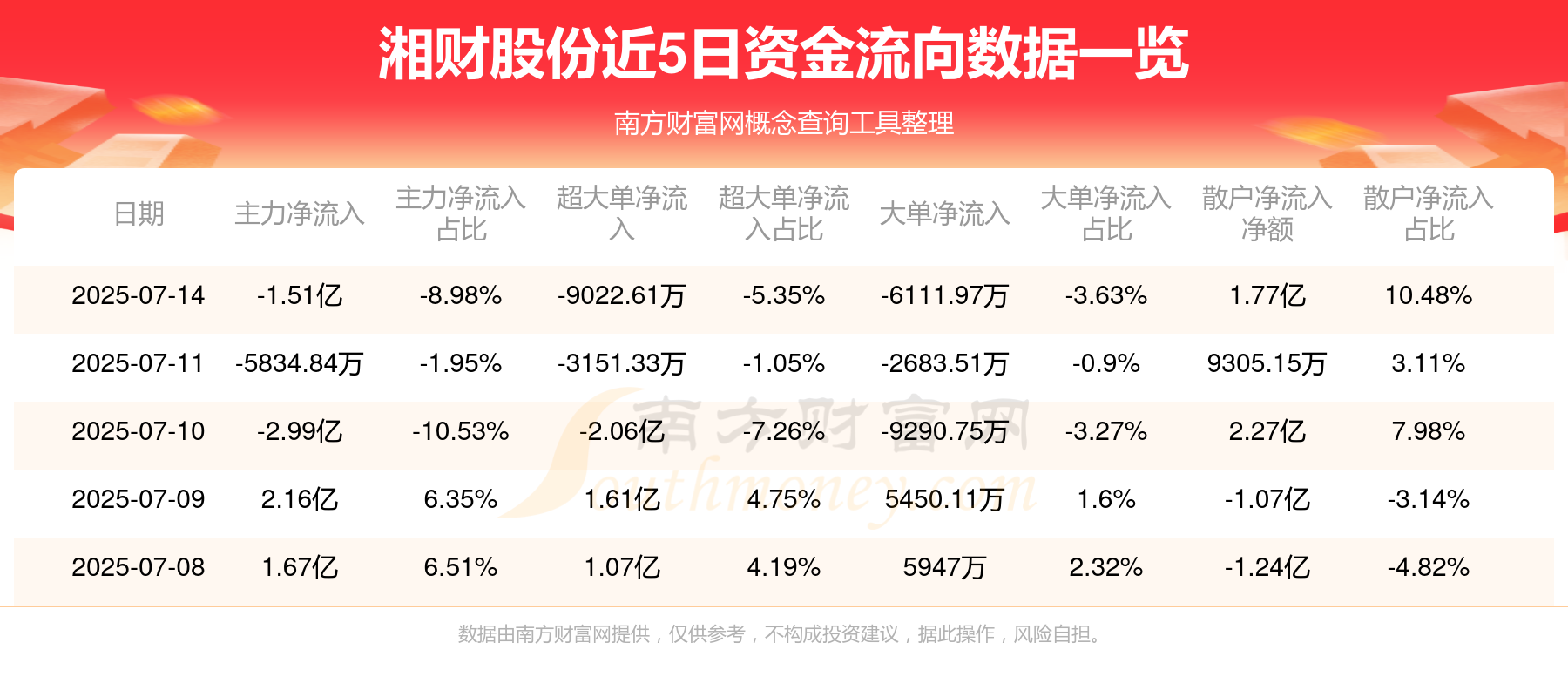 7月11日开盘最新消息,湘财股份5日内股价上涨4.02%,截至15时,该股报10.940元涨0.35% 。