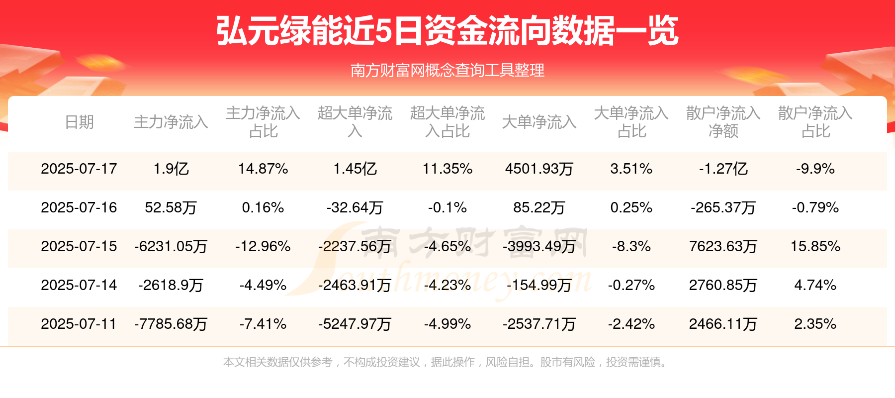 近5日资金流向一览见下表: