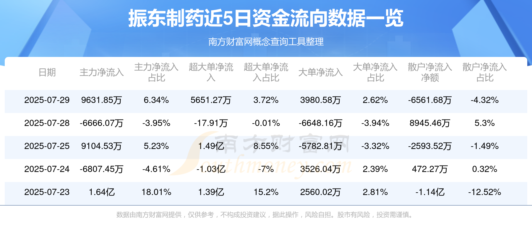 7月29日消息,振东制药主力净流入9631.85万元,超大单净流入5651.27万元,散户净流出6561.68万元。