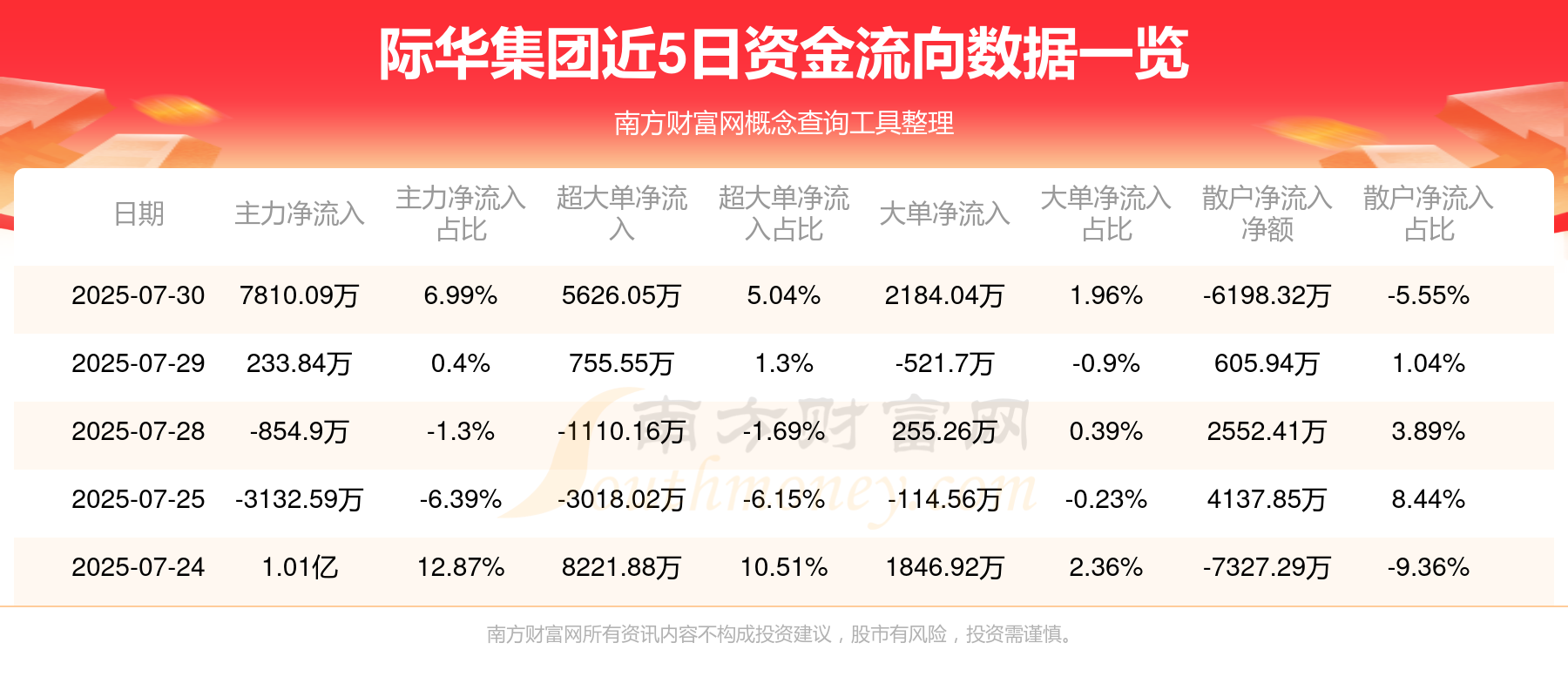 7月30日消息,际华集团资金净流入7810.09万元,超大单资金净流入5626.05万元,换手率6.23%,成交金额11.17亿元。