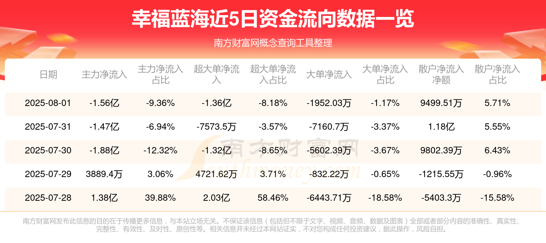 近5日资金流向一览见下表: