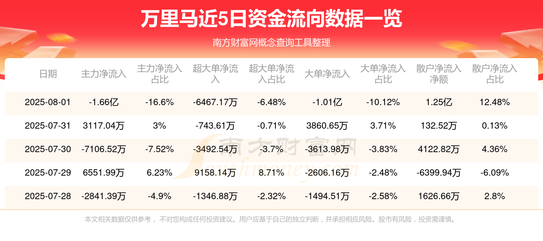 近5日资金流向一览见下表: