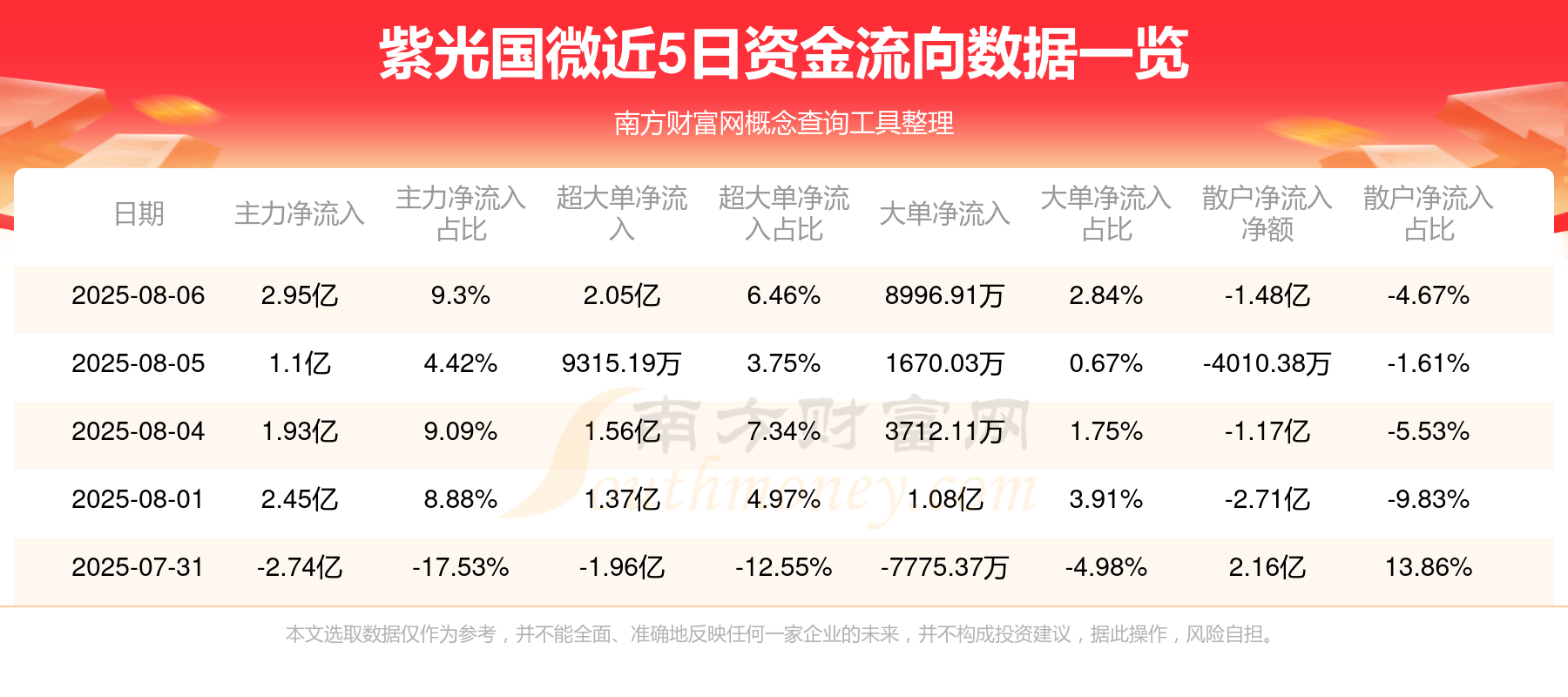 8月6日消息,紫光国微主力资金净流入2.95亿元,超大单资金净流入2.05亿元,散户资金净流出1.48亿元。