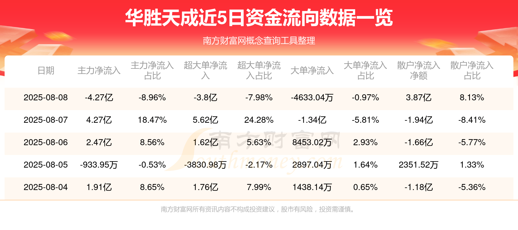 近5日资金流向一览见下表: