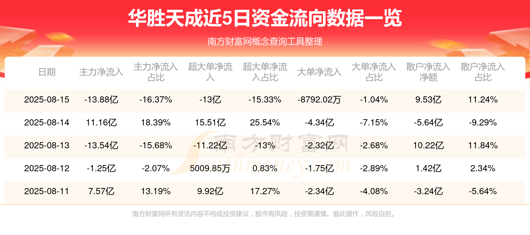 近5日资金流向一览见下表: