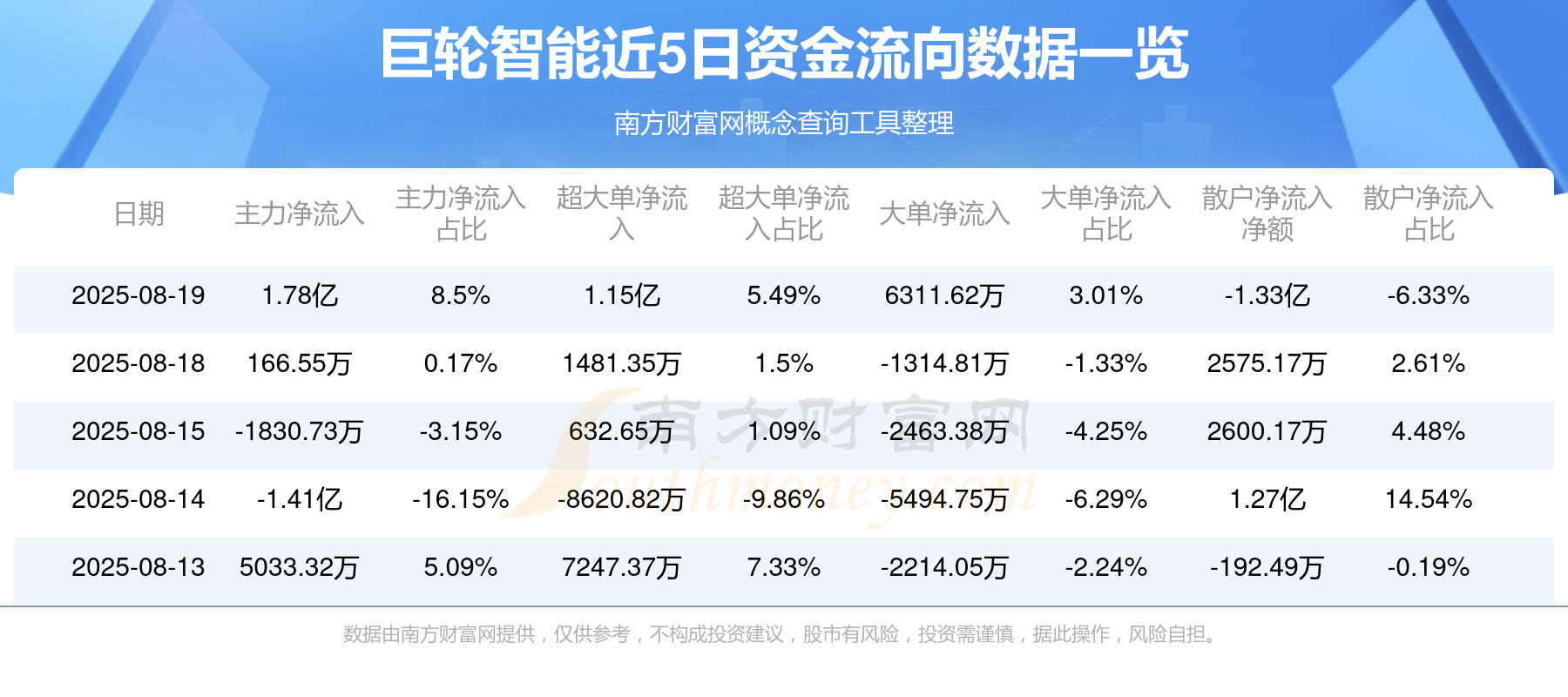 8月19日该股主力资金净流入1.78亿元,超大单资金净流入1.15亿元,大单资金净流入6311.62万元,中单资金净流出4557.05万元,散户资金净流出1.33亿元。