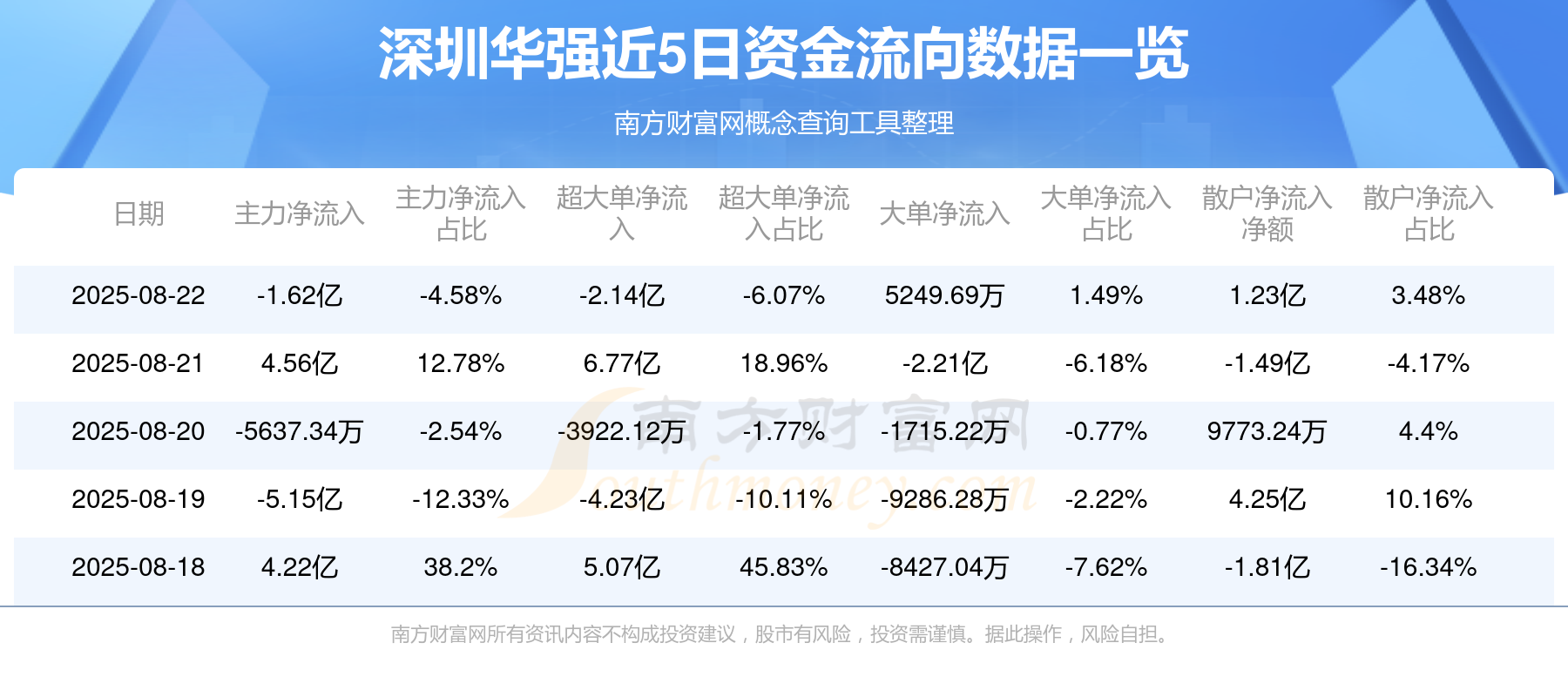 近5日资金流向一览见下表: