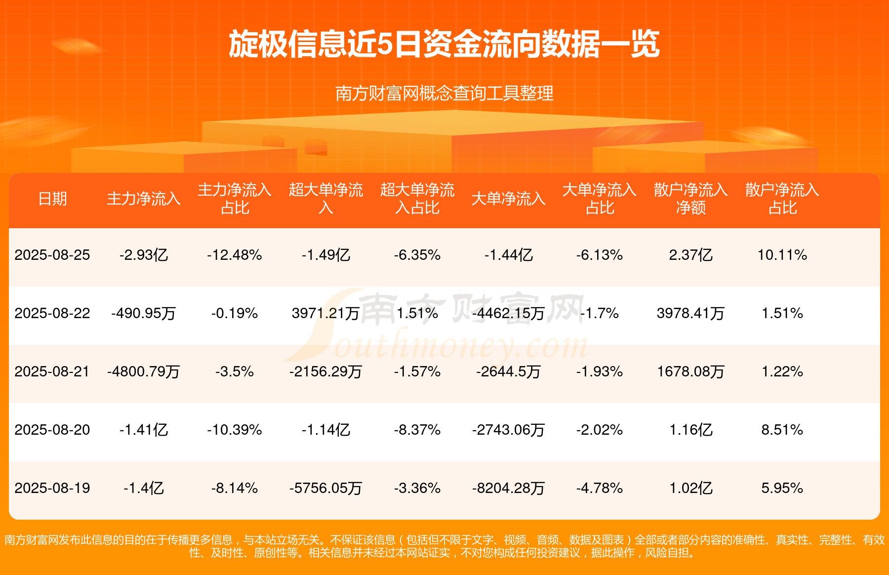 截止8月25日15点旋极信息(300324)跌2.36%,报6.200元/股,3日内股价上涨7.42%,换手率21.53%,成交额23.46亿元。