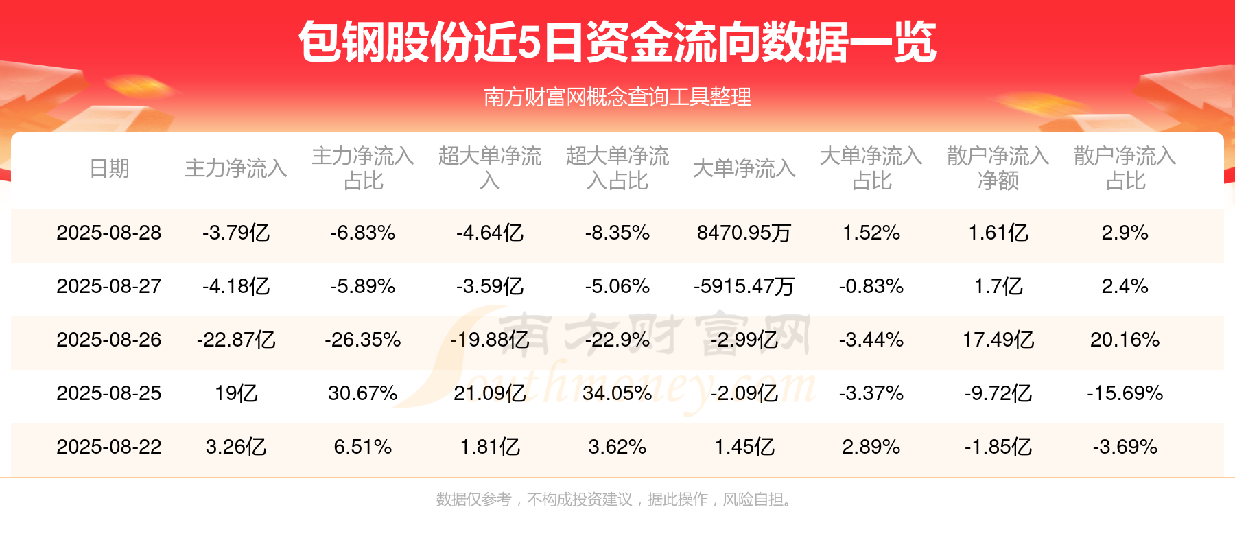 资金流向数据方面,8月28日主力资金净流流出3.79亿元,超大单资金净流出4.64亿元,大单资金净流入8470.95万元,散户资金净流入1.61亿元。