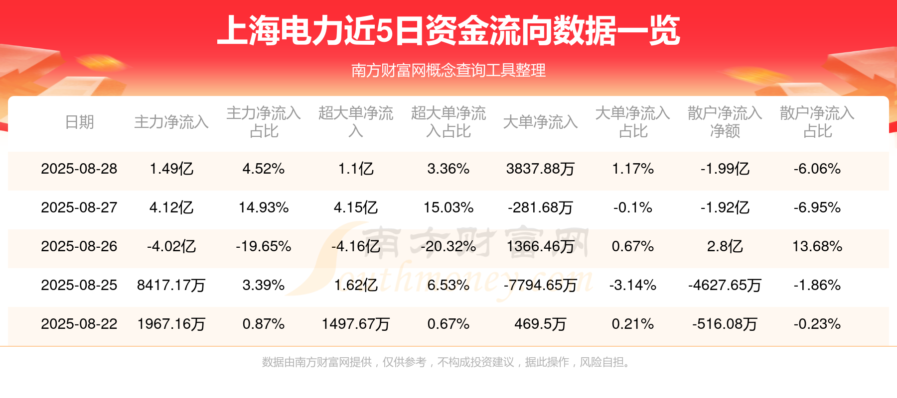 8月28日消息,上海电力资金净流入1.49亿元,超大单资金净流入1.1亿元,换手率7.77%,成交金额32.5亿元。