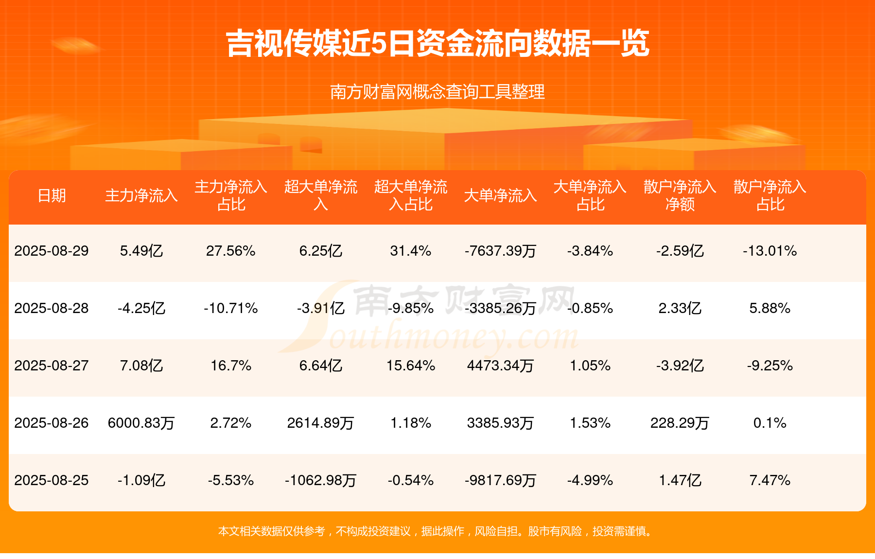 资金流向数据方面,8月29日主力资金净流流入5.49亿元,超大单资金净流入6.25亿元,大单资金净流出7637.39万元,散户资金净流出2.59亿元。