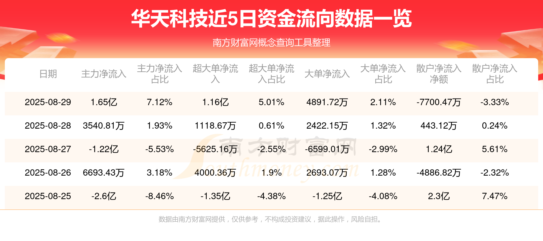 8月29日消息,华天科技主力资金净流入1.65亿元,超大单资金净流入1.16亿元,散户资金净流出7700.47万元。