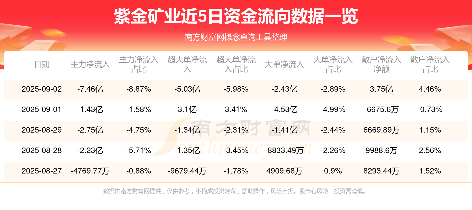 9月2日消息,紫金矿业主力净流出7.46亿元,超大单净流出5.03亿元,散户净流入3.75亿元。