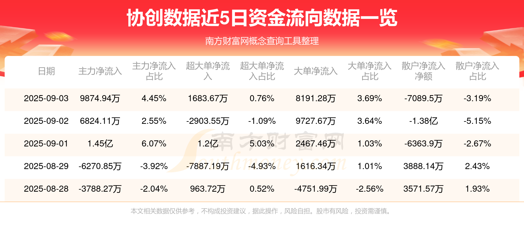 近5日资金流向一览见下表:
