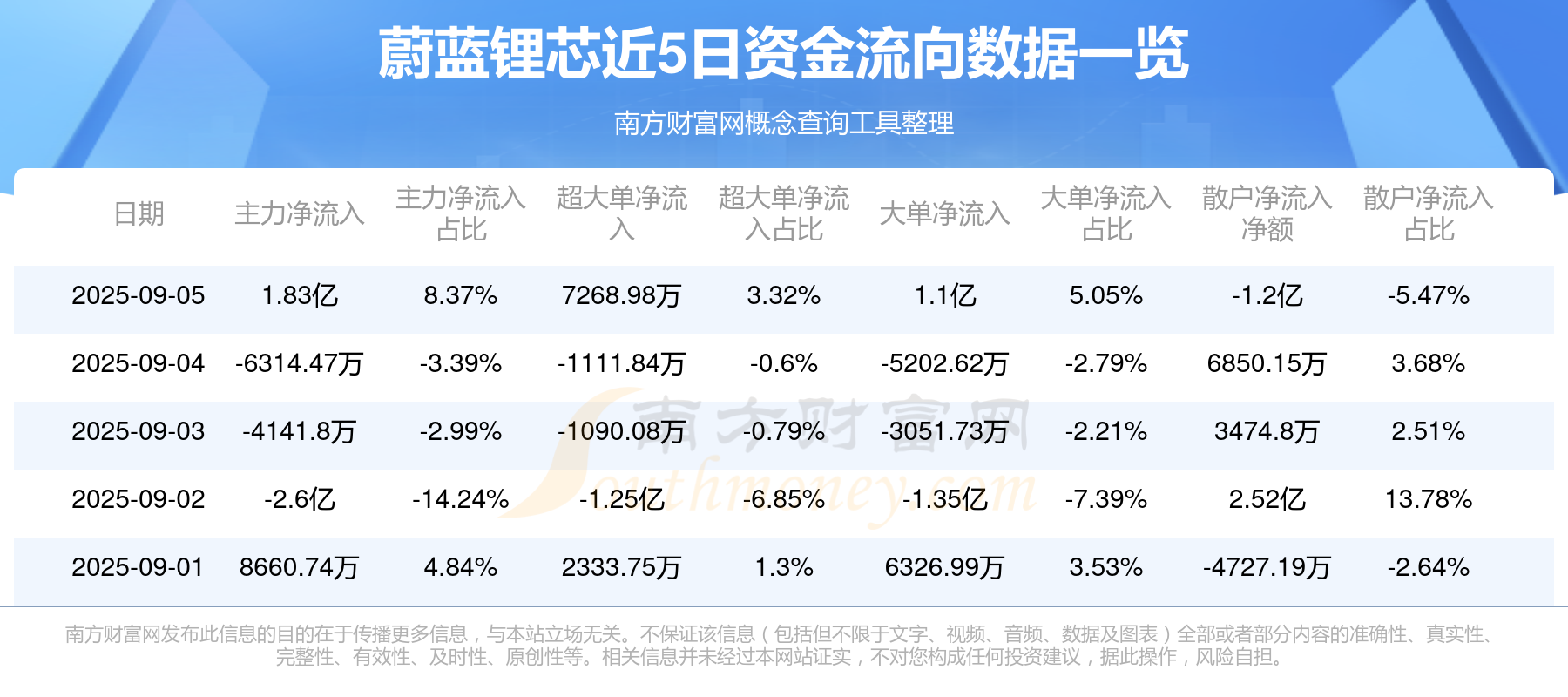 9月5日该股主力净流入1.83亿元,超大单净流入7268.98万元,大单净流入1.1亿元,中单净流出6350.11万元,散户净流出1.2亿元。