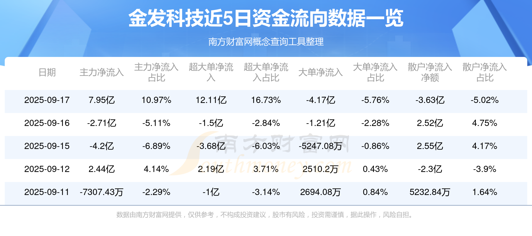 9月17日消息,金发科技9月17日主力资金净流入7.95亿元,超大单资金净流入12.11亿元,大单资金净流出4.17亿元,散户资金净流出3.63亿元。