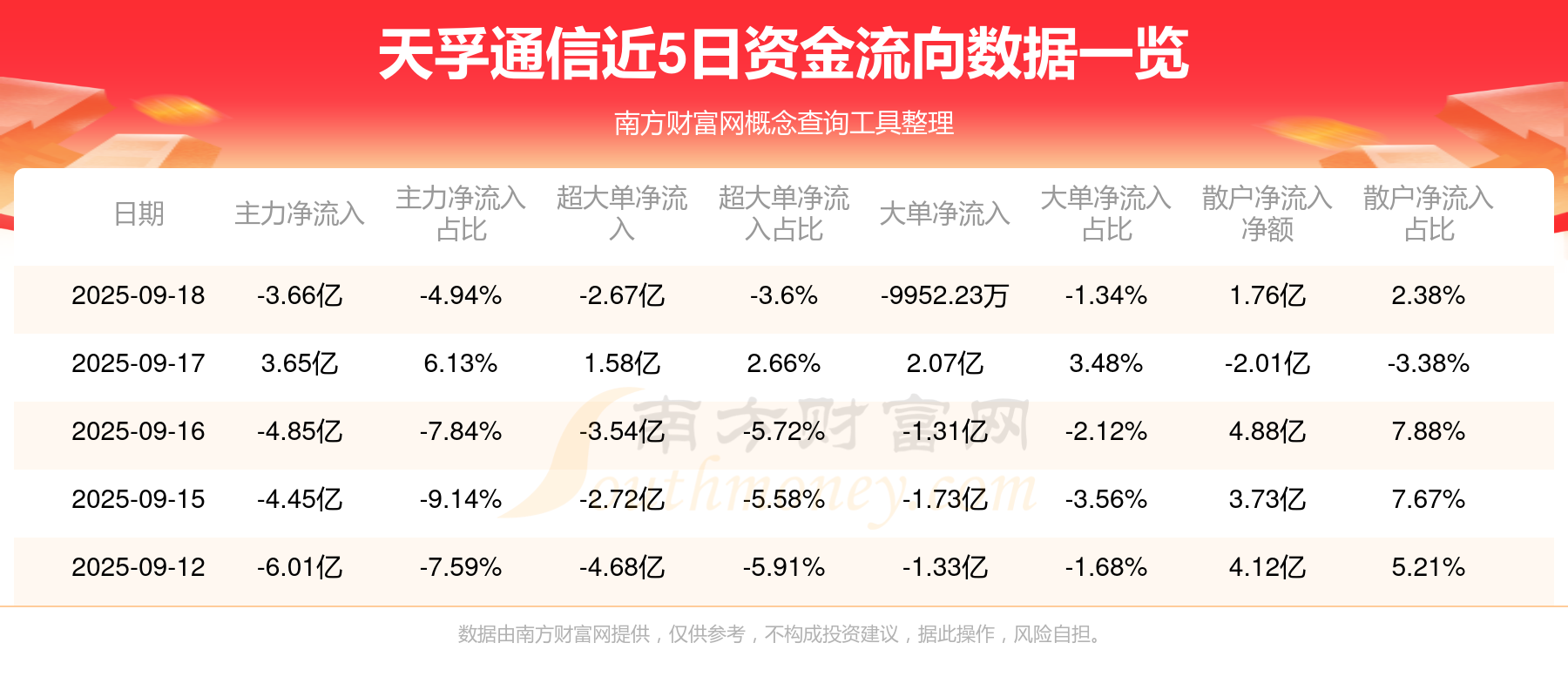 9月18日消息,天孚通信9月18日主力资金净流出3.66亿元,超大单资金净流出2.67亿元,大单资金净流出9952.23万元,散户资金净流入1.76亿元。