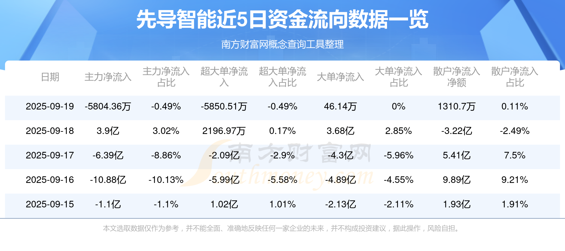 资金流向数据方面,9月19日主力资金净流流出5804.36万元,超大单资金净流出5850.51万元,大单资金净流入46.14万元,散户资金净流入1310.7万元。