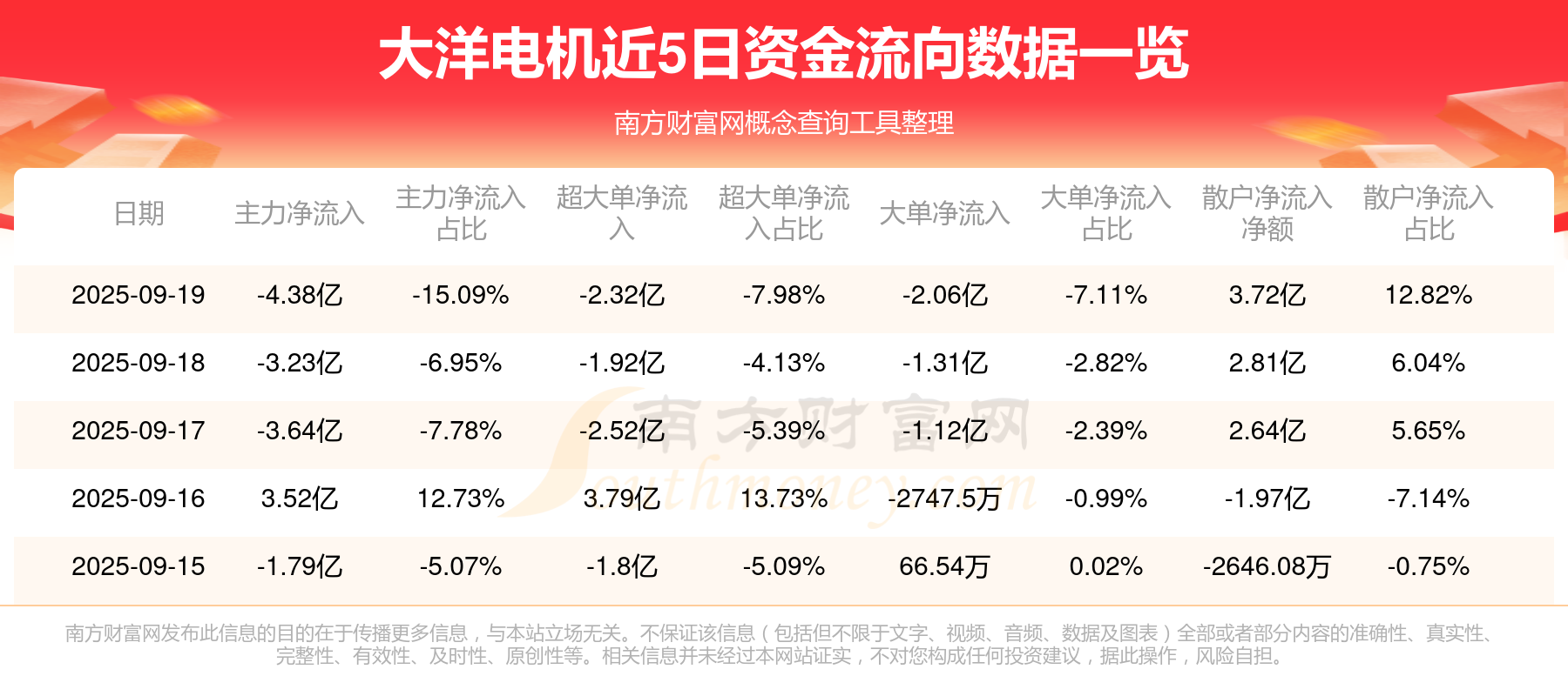 9月19日该股主力资金净流出4.38亿元,超大单资金净流出2.32亿元,大单资金净流出2.06亿元,中单资金净流入6591.62万元,散户资金净流入3.72亿元。
