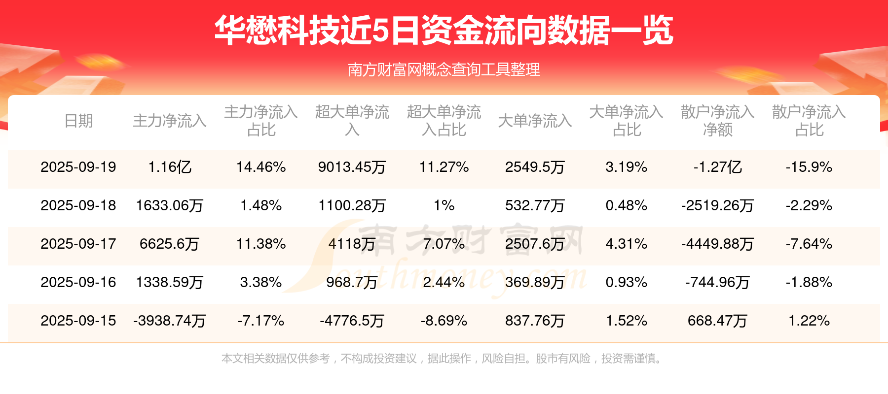 9月19日消息,华懋科技主力净流入1.16亿元,超大单净流入9013.45万元,散户净流出1.27亿元。