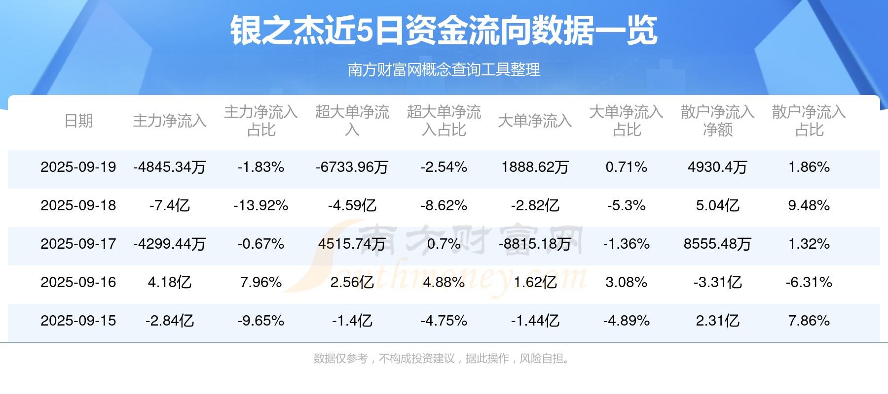 9月19日讯息,银之杰3日内股价下跌9.32%,市值为386.53亿元,涨0.37%,最新报54.700元。