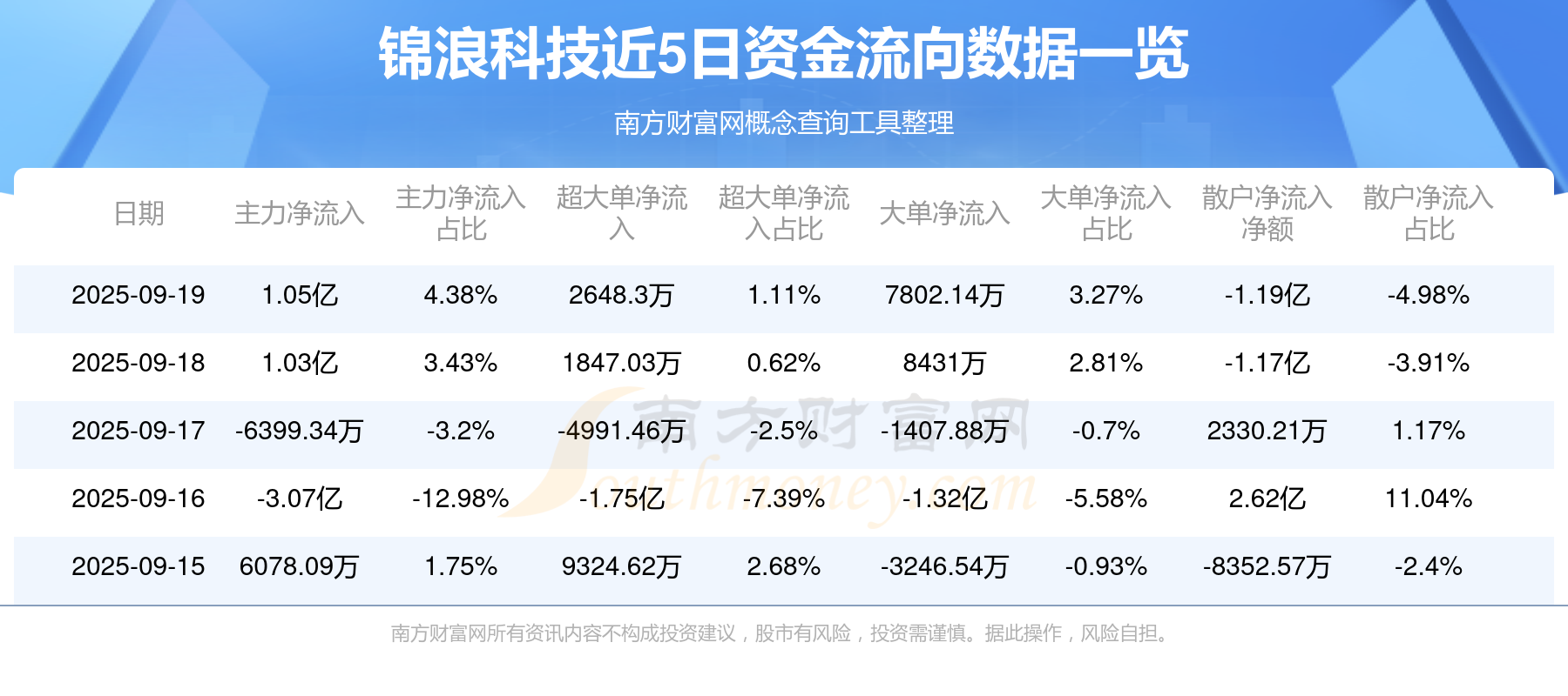 9月19日消息,锦浪科技主力资金净流入1.05亿元,超大单资金净流入2648.3万元,散户资金净流出1.19亿元。