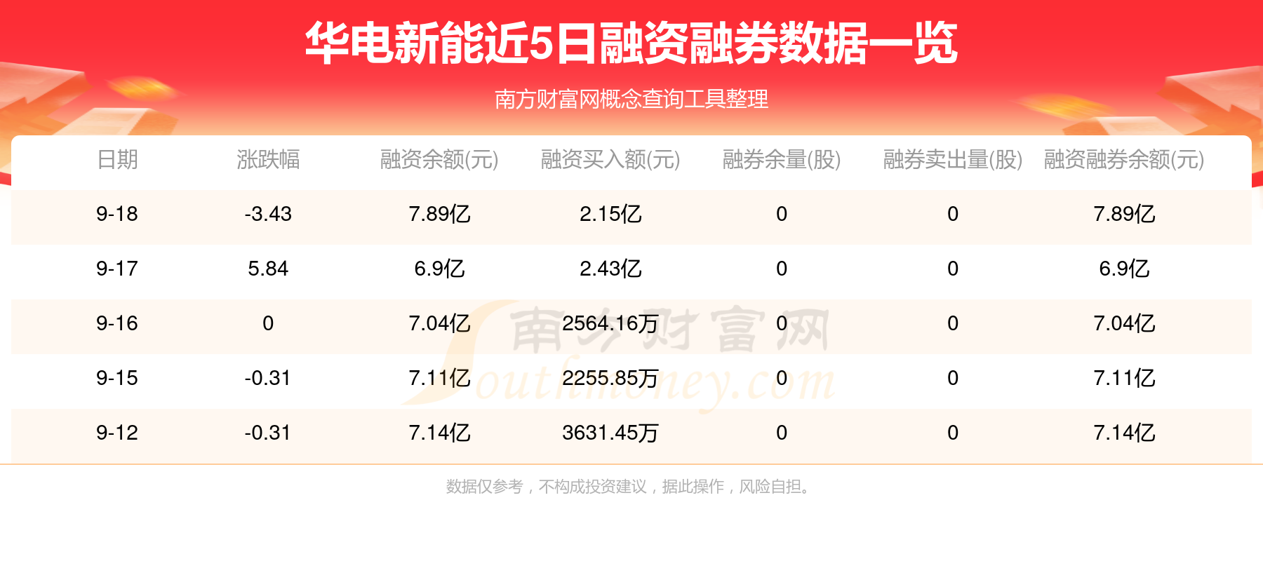 华电新能9月18日融券信息显示,融资方面,当日融资买入2.15亿元,融资偿还1.16亿元,融资净买额9915.52万元。近5日融资融券数据一览见下表: