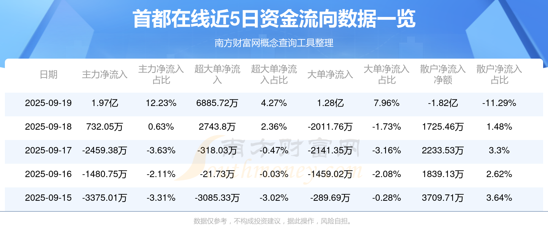 9月19日消息,首都在线资金净流入1.97亿元,超大单资金净流入6885.72万元,换手率17.92%,成交金额16.13亿元。