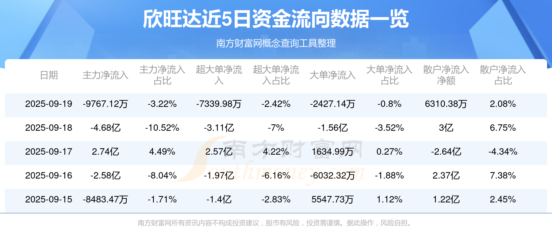 9月19日消息,欣旺达主力资金净流出9767.12万元,超大单资金净流出7339.98万元,散户资金净流入6310.38万元。