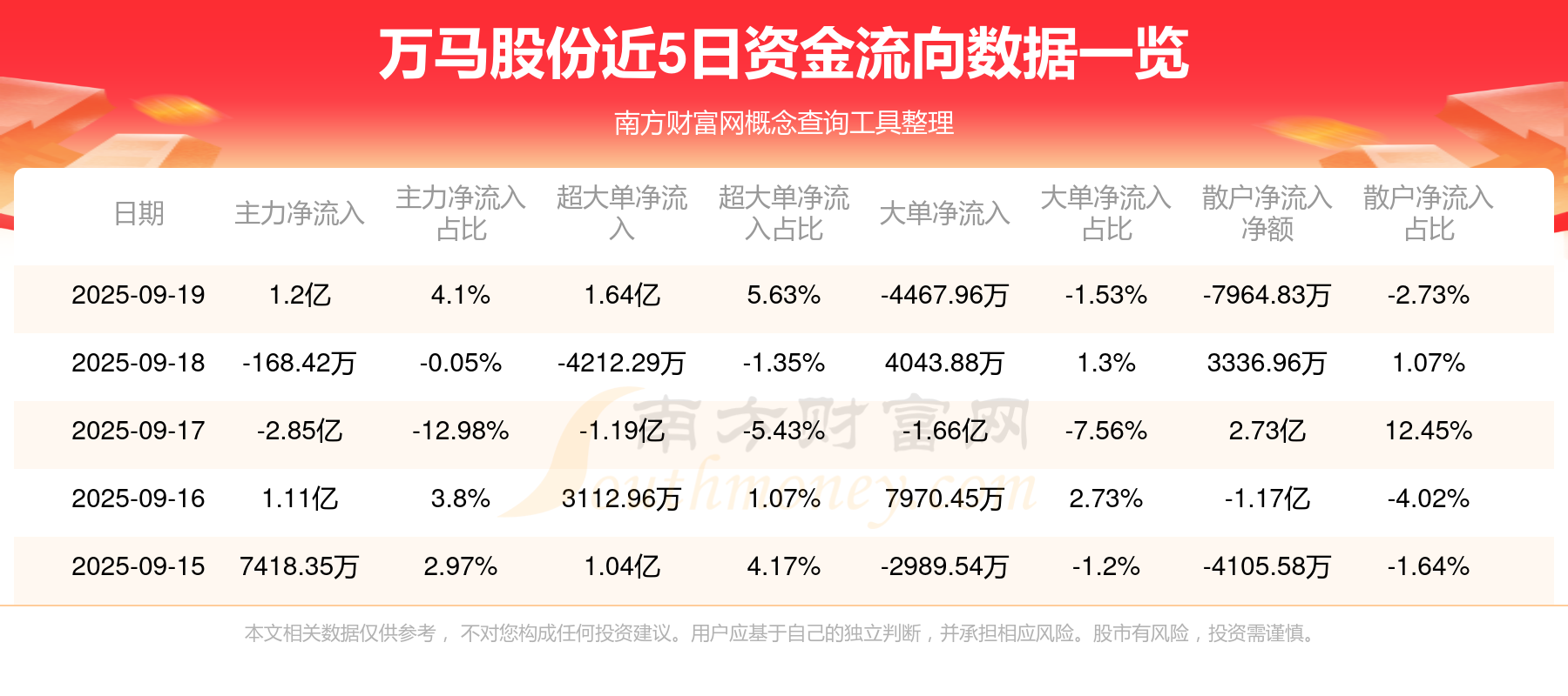 9月19日消息,万马股份资金净流入1.2亿元,超大单资金净流入1.64亿元,换手率15.57%,成交金额29.2亿元。