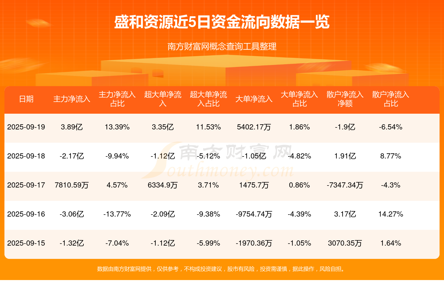 9月19日该股主力净入3.89亿元,其中资金流入方面:超大单净入7.28亿元,大单净入7.63亿元,中单净入7.35亿元,散户净入6.11亿元;资金流出方面:超大单净出3.94亿元,大单净出7.09亿元,中单净出9.33亿元,散户净出8亿元。