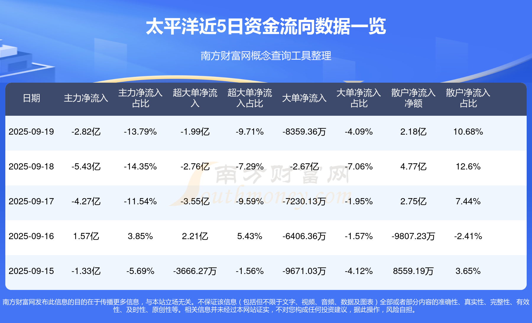 9月19日该股主力资金净流出2.82亿元,超大单资金净流出1.99亿元,大单资金净流出8359.36万元,中单资金净流入6376.46万元,散户资金净流入2.18亿元。
