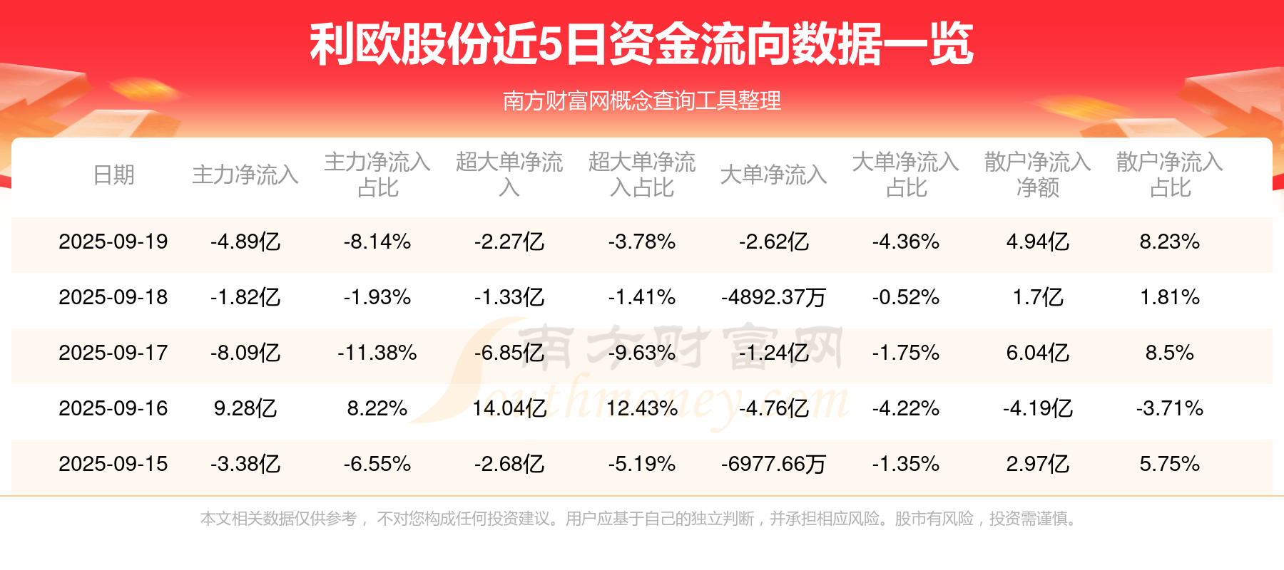 9月19日消息,利欧股份主力净流出4.89亿元,超大单净流出2.27亿元,散户净流入4.94亿元。